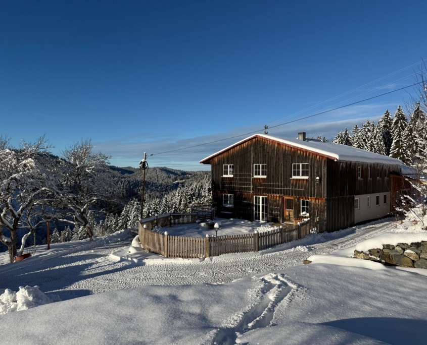 Das Haus liegt eingebettet in grüne Wiesen und Wälder – mit einem Ausblick, der den Kopf frei macht und den Blick auf das Wesentliche lenkt.